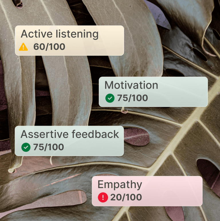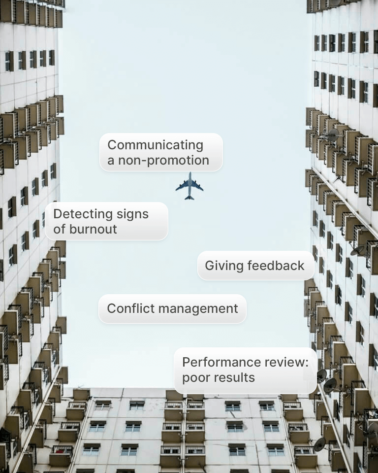 Train your managers in key conversations — feedback, conflict resolution, and early warning detection — with our AI-powered avatar.